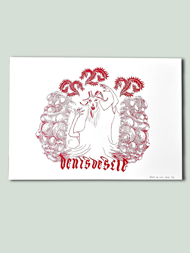 Dents de Scie® Geoffrey le Bouc Sérigraphie en Encre Rouge sur Papier Blanc