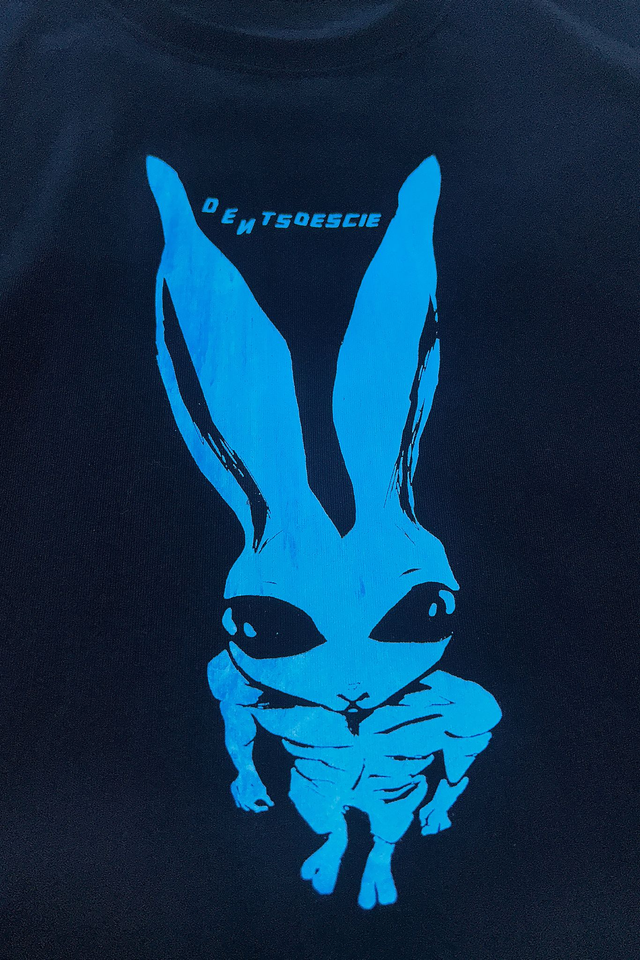 Plonge direct dans le vibe mystique et grunge des 90s. Le design en mode fisheye, hommage aux photos cultes de l’époque, met en avant un lapin énigmatique. C’est pas juste un lapin : c’est le guide ultime, le porteur de la carotte sacrée – la clé d’un jus mythique qui alimente les âmes prêtes à explorer les couloirs de l'infini.
